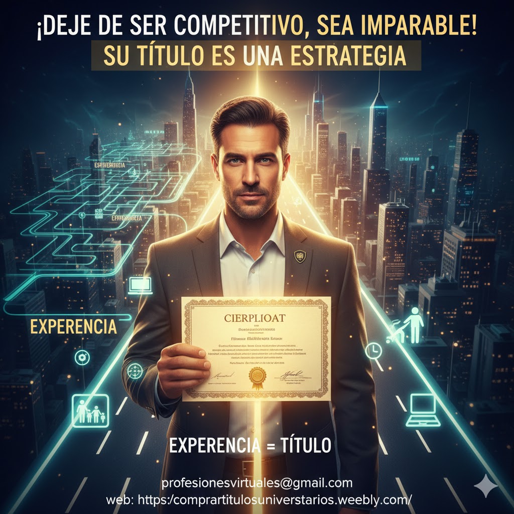 Datos del aviso: Creado: 2025-11-12 20:30:15 Estado/Provincia: Lima Ciudad/Población: Descripción: ???? ¡Transforma tu Experiencia en un Título Universitario Legal! ¿Cansado de que tu trayectoria laboral no tenga el reconocimiento oficial que merece? Es el momento de dar el salto. Con nuestro servicio, puedes convertir tus años de experiencia profesional en un Título Universitario legal y reconocido, todo desde la comodidad de la educación a distancia. No dejes que la falta de un papel limite tu futuro. ¡Valida tu conocimiento y abre nuevas puertas! ➡️ Contáctanos para validar tu experiencia: ???? Escríbenos: profesionesvirtuales@gmail.com ???? Visítanos:https://comprartitulosuniversitarios.weebly.com/ #títulouniversitario #ValidaciónDeExperiencia #educaciónadistancia #profesionallegal |
